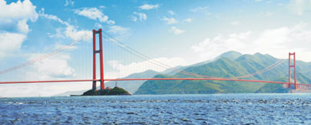 浙江西堠門跨海大橋 全長5452米,主橋長2588米,主跨1650米,兩跨連續(xù)鋼箱懸索橋,2009年12月建成通車,主跨居世界第二、國內(nèi)第一。