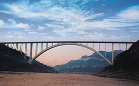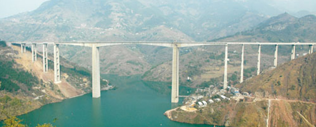 重慶云(陽)萬(州)高速湯溪河特大橋 全長950.44米,主跨230米,主墩高156米,預(yù)應(yīng)力砼連續(xù)鋼構(gòu)橋,2008年12月建成通車。
