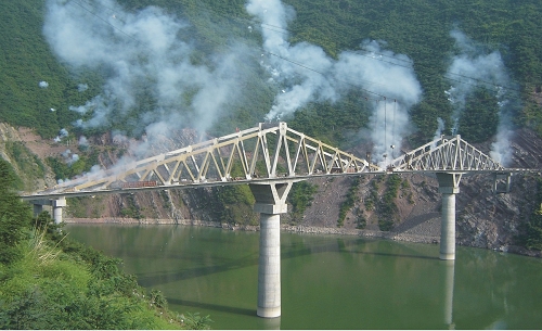 湖北秭歸卡子灣大橋 全長(zhǎng)344.3米,主跨140米,預(yù)應(yīng)力砼斜拉式桁架連續(xù)鋼構(gòu)橋,2006年11月建成通車。其主跨居同期同類橋梁全國(guó)第二。