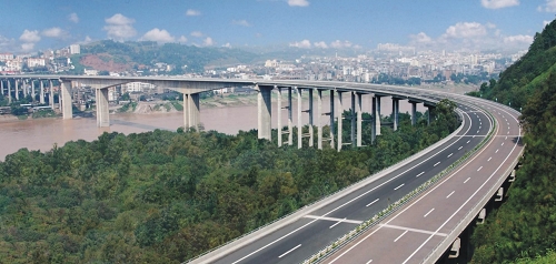 瀘州長江二橋 全長1408米,主跨252米,預(yù)應(yīng)力砼連續(xù)鋼構(gòu)橋,2000年8月建成通車。主跨居同期同類橋梁全國第二,其不對(duì)稱壓重式抗撥緢施工屬國內(nèi)首創(chuàng),獲中國公路學(xué)會(huì)科學(xué)技術(shù)三等獎(jiǎng)。