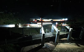 4月13日凌晨,漢巴南鐵路蓬安制梁場跨蘭渝鐵路特大橋箱梁架設二級施工圓滿完成。