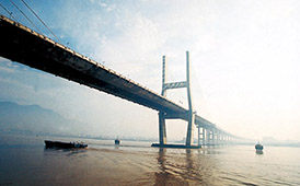 浙江溫州甌江二橋 全長1826米,主跨276米,雙塔雙索面預應力砼斜拉橋,1998年12月建成通車。
