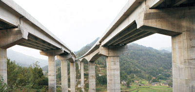 廣南高速蒼溪嘉陵江特大橋 全橋長1339米,主跨200米,墩高105米,預應力砼連續(xù)剛構橋,2012年4月建成通車。