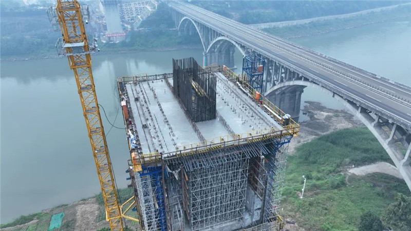 隆黃鐵路隆敘段瀘州沱江鐵路特大橋主橋?qū)侔嗡髅嫘崩瓨?酒樽造型),是國(guó)內(nèi)同類型最大跨度的鐵路單索面斜拉橋。該橋既是項(xiàng)目部的重點(diǎn)工程,也是全線的控制性工程。10#墩、11#墩0#塊件長(zhǎng)20m,高14m,頂寬15.8m,底寬11.7m,設(shè)計(jì)混凝土方量為2400?,本次10#墩澆筑混凝土為1050?,澆筑高度為7.8-14m。此次澆筑的順利完成,標(biāo)志著沱江鐵路特大橋上部構(gòu)造施工拉開序幕,項(xiàng)目整體施工取得階段性勝利,為沱江鐵路特大橋在2023年完成建設(shè)任務(wù)奠定了堅(jiān)實(shí)的基礎(chǔ)。