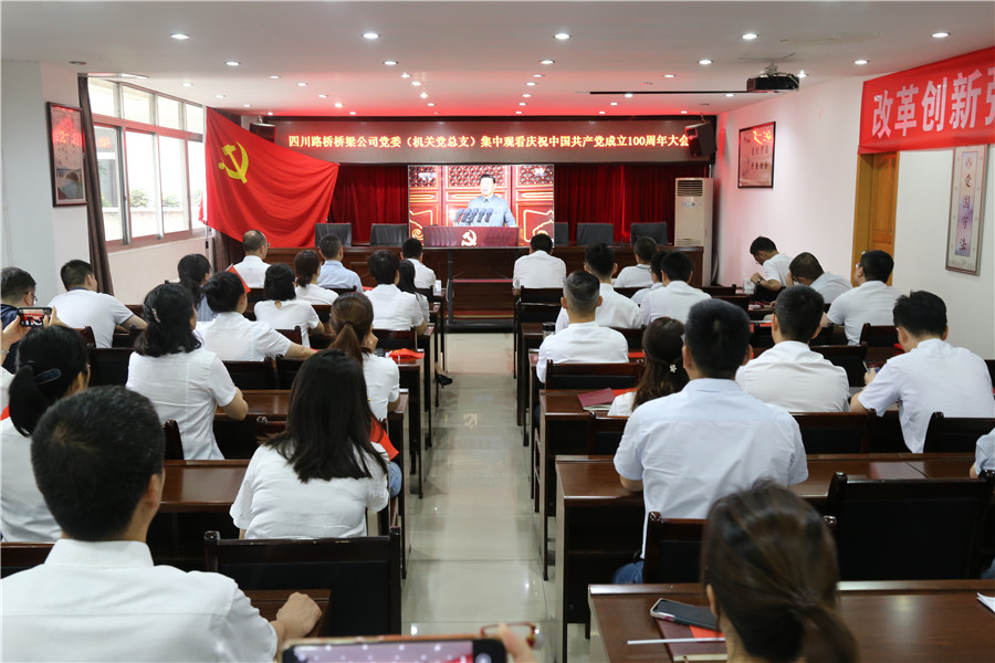 7月1日上午8時,慶祝中國共產(chǎn)黨成立100周年大會在北京天安門廣場隆重舉行。中共中央總書記、國家主席、中央軍委主席習近平在會上發(fā)表重要講話。四川路橋橋梁公司黨委組織公司在家黨委委員、領導班子成員、機關全體黨員在機關大會議室觀看直播,各單位在項目部收看現(xiàn)場直播。