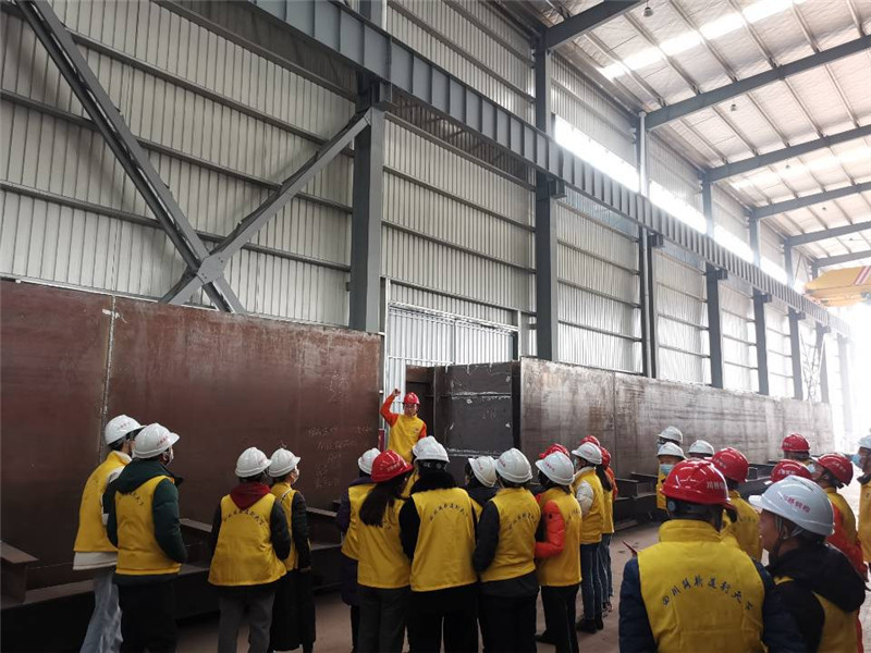 全體人員首先在生產(chǎn)車間,就近期加工的金簡(jiǎn)仁項(xiàng)目鋼箱梁加工、檢測(cè)、吊裝等細(xì)致交流。加工廠技術(shù)人員王瑞向大家介紹講解加工全流程情況。作為公司幾大主營(yíng)下屬單位,加工廠作為大型鋼結(jié)構(gòu)加工廠家,和業(yè)務(wù)包含鋼結(jié)構(gòu)檢測(cè)的檢測(cè)公司,以及設(shè)備管理的機(jī)具站,活動(dòng)人員借此機(jī)會(huì)不斷提問、交流、分享。