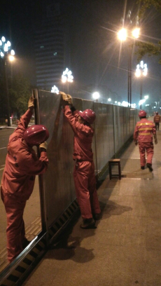 宜賓南門(mén)大橋于4月26日0.00正式打圍施工,江水悠悠,夜色茫茫,只見(jiàn)100余位身穿橘紅色的四川路橋工作服的”川橋人”,在夜色中憑借燈光,分成兩隊(duì)7個(gè)小組戰(zhàn)斗在大橋南北岸引橋上下游側(cè)、引道橋頭、外南街上下游、橋頭五號(hào)墩等位置,奮力進(jìn)行圍擋施工和交通標(biāo)志牌的擺放。