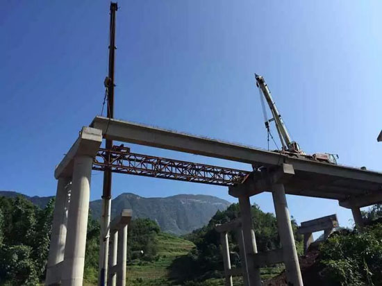 永寧河大橋50mT梁架橋機(jī)過跨完畢