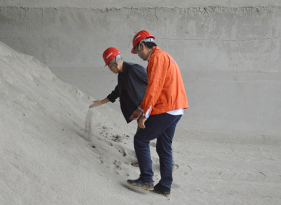 蔡董事長深入拌合站查看砂石原材料質量