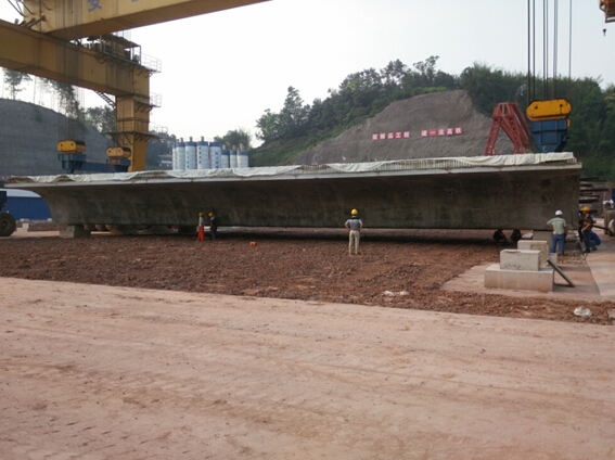 5月13日下午16時(shí),伴隨著機(jī)器的轟鳴聲、鞭炮聲、熱烈的掌聲和歡呼聲,900T輪式提梁機(jī)將737.6噸箱梁緩緩提起,成功將737.6噸箱梁移至存梁臺(tái)座,這標(biāo)志著翠屏制梁場(chǎng)正式進(jìn)入箱梁批量生產(chǎn)階段,為后期的施工生產(chǎn)奠定了堅(jiān)實(shí)的基礎(chǔ)。