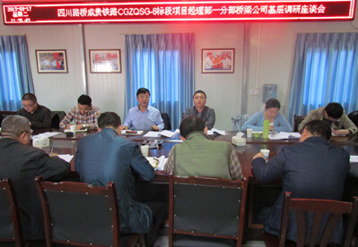 隨后,劉書記召集分部全體職工在分部會議室進(jìn)行了基層調(diào)研座談會。分部經(jīng)理張捷、支部書記劉永富、副經(jīng)理唐正國、總工王鋒對各自分管的工作進(jìn)行了簡要匯報。各部門負(fù)責(zé)人及工區(qū)長也在座談會上積極發(fā)言,提出了很好的建議和想法。團(tuán)委書記陳利麗希望我部搞好團(tuán)隊(duì)建設(shè)和導(dǎo)師帶徒等多項(xiàng)活動,做好宣傳報道工作,發(fā)揮更多的青春正能量,促進(jìn)項(xiàng)目的生產(chǎn)。面對2015年繁重的產(chǎn)值目標(biāo)任務(wù),胡總在會上提出了七點(diǎn)要求:一是統(tǒng)一思想,認(rèn)清形勢,明確目標(biāo),全力完成產(chǎn)值任務(wù);二是加大考核力度,制定相應(yīng)的考核辦法,積極參加項(xiàng)目部兩個“大干100天”勞動競賽活動;三是強(qiáng)化現(xiàn)場管理,確保安全質(zhì)量可控,特別是隧道施工管理;四是加大項(xiàng)目執(zhí)行力度,做好成本過程控制;五是繼續(xù)加大征拆工作力度;六是加強(qiáng)團(tuán)結(jié),凝心聚力,帶好團(tuán)隊(duì),培養(yǎng)人才;七是加強(qiáng)協(xié)作隊(duì)伍管理和民工工資發(fā)放。
