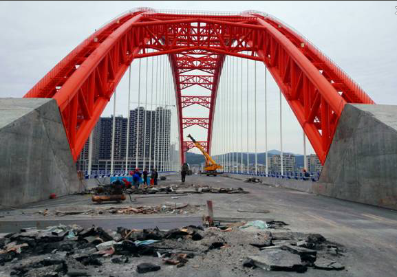 蒼溪縣嘉陵江三橋作為我公司第一個(gè)BT項(xiàng)目工程,為橋梁公司創(chuàng)新發(fā)展帶來(lái)新的機(jī)遇及理念。下承式鋼管混凝土系桿拱橋,對(duì)支承系統(tǒng)、主拱肋拱軸線(xiàn)控制系統(tǒng)、鋼管混凝土配制、主拱肋鋼管的拼裝等施工工藝都有特殊的要求,因此技術(shù)復(fù)雜,施工難度大。從2013年1月開(kāi)工至今天,23個(gè)月的日日夜夜跨越兩個(gè)漫長(zhǎng)的酷暑,回想在施工過(guò)程中遇到的各種困難,全體員工無(wú)不感慨萬(wàn)千。蒼溪縣嘉陵江三橋取得今天的勝利是項(xiàng)目部全體員工共同努力、迎難而上的結(jié)果,更是“川橋”兒女齊心協(xié)力、堅(jiān)強(qiáng)毅力的見(jiàn)證,相信在我們辛勤的付出之后蒼溪縣嘉陵江三橋最終定會(huì)收獲成功的果實(shí),為蒼溪人民交一份滿(mǎn)意的答卷。