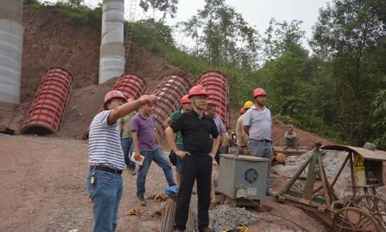 蔡總首先深入到施工第一線,對(duì)控制性工程永寧河大橋、重點(diǎn)工程羅家灣大橋、燒龜田大橋、雙桂園大橋及路基、預(yù)制場(chǎng)及鋼筋加工廠等進(jìn)行細(xì)致察看,對(duì)工程質(zhì)量、安全、進(jìn)度進(jìn)行現(xiàn)場(chǎng)指導(dǎo)。蔡總指出:1.橋梁施工受天氣影響較大,施工方案若不夠細(xì)致,對(duì)問(wèn)題預(yù)估不足,必將影響工程進(jìn)度及成本;2.預(yù)制場(chǎng)是項(xiàng)目部出產(chǎn)值樹形象的關(guān)鍵點(diǎn),要求統(tǒng)籌協(xié)調(diào),加強(qiáng)管理,加快生產(chǎn);3.運(yùn)梁通道的暢通,是確保預(yù)制場(chǎng)正常生產(chǎn)的關(guān)鍵,必須合理安排橋梁下部結(jié)構(gòu)及路基施工;4.跨鐵路、跨省道施工作業(yè)區(qū),要制定專項(xiàng)施工方案,盡早與相關(guān)單位協(xié)調(diào),完善相關(guān)手續(xù)。