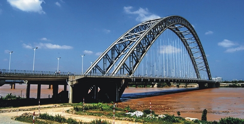 廣西南寧永和大橋 全長1402.15米,主跨338米,單跨下承式鋼管砼變高度桁式有推力無鉸拱橋,2004年10月建成通車。共46個(gè)吊裝節(jié)段,單節(jié)段最大吊重121.8噸,公司承擔(dān)吊裝工程。