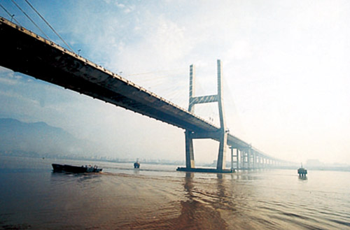 全長(zhǎng)1826米,主跨276米,雙塔雙索面預(yù)應(yīng)力砼斜拉橋,1998年12月建成通車(chē)。