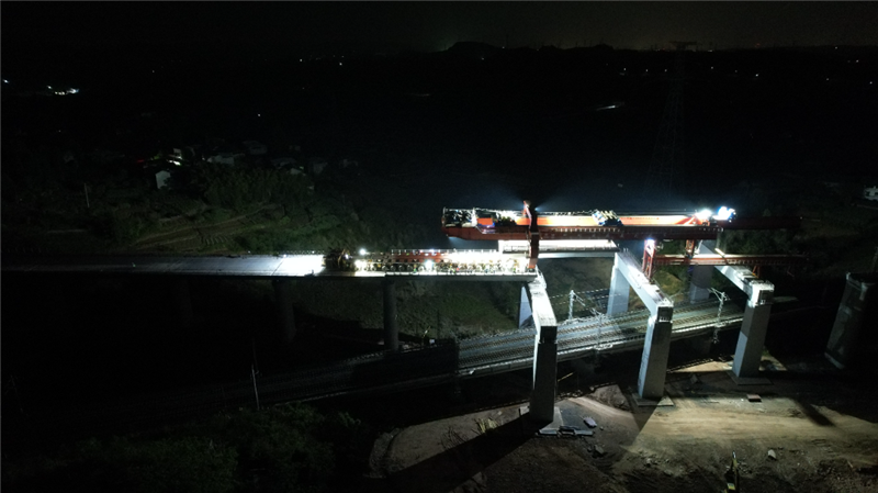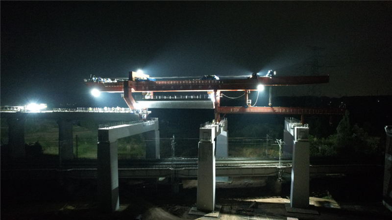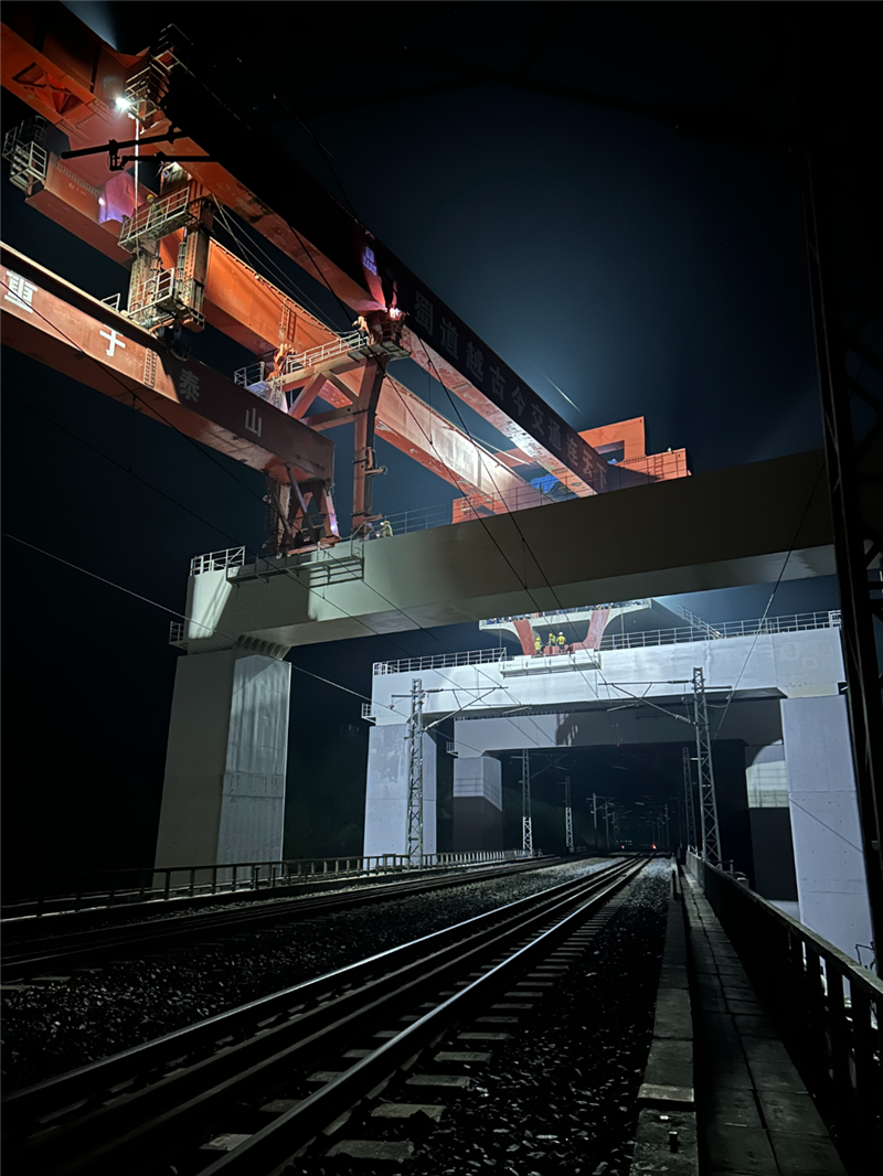 4月13日凌晨,漢巴南鐵路蓬安制梁場跨蘭渝鐵路特大橋箱梁架設(shè)二級(jí)施工圓滿完成。