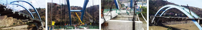 倮果金沙江大橋位于攀枝花市省道214線,于1995年1月建成通車。2012年12月10日下午6點(diǎn)15分,大橋7號(hào)吊桿下部傳力錨定裝置失效,導(dǎo)致局部橋面板、人行道呈V字形凹陷。公司臨危受命,對(duì)大橋進(jìn)行搶險(xiǎn)、加固。
